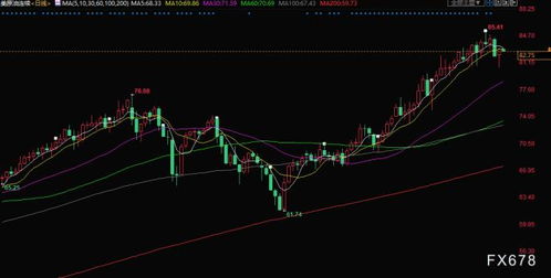 技术面逼近“生死线”,78美元成多空分水岭